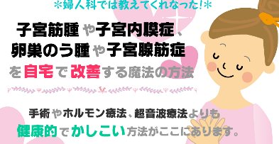生理痛が10日であっさり痛みがでなくなった魔法の方法”は、化学療法に一切頼ることなく、自宅で安全に子宮筋腫・子宮内膜症・卵巣のう腫・子宮腺筋症を改善させることができる唯一のマニュアルです。